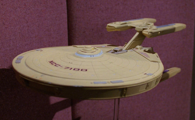 The NCC-7100 vessel was commemorated by a model displayed in the USS Enterprise-D ready room of Captain Jean-Luc Picard in the mid-2360s decade. (TNG episode: "Encounter at Farpoint"; TNG movie: Generations)