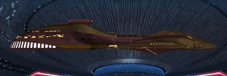 The Nandi-class warship's hull was gold-coated and made to imitate latinum. (STO video game: The Iconian War)[2]