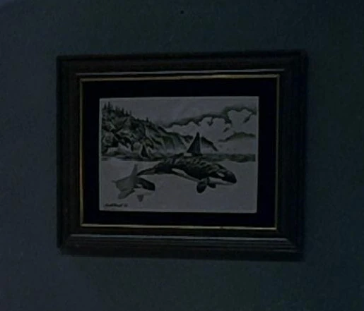 In 2293, a black and white picture of two orcas hung from the bulkhead in Captain James T. Kirk's quarters on the USS Enterprise-A. (TOS movie: Star Trek VI: The Undiscovered Country)