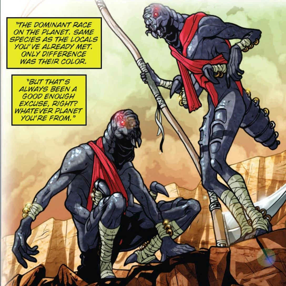 The Phaedans had a civilization that was comparable to Earth's Roman Empire. By the 2230s, had split into two races; the blue Phaedans and the black Phaedans who called themselves the Shadow that became the dominant species. The Shadow then started a genocidal war against the blue Phaedans, committing atrocities such as eating and enslaving children.
