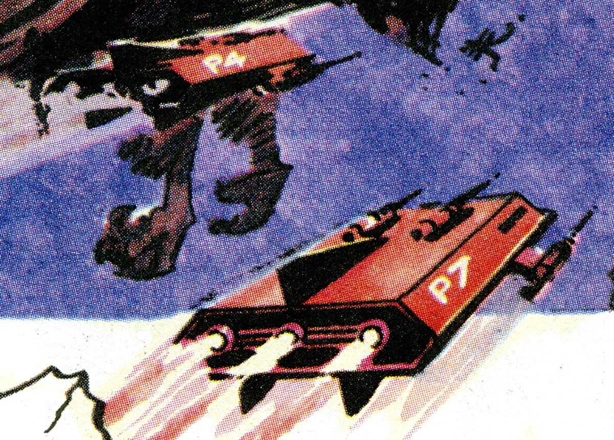 Space bugs such as Pursuit 7 were painted red. They were armed with four phaser cannons, two on the roof of the craft and two attached to the forward hull. They had three rear engines and three atmospheric stabilizer fins.