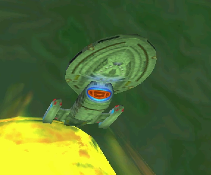 The Federation starship USS Karr at Rift Alpha in fluidic space.