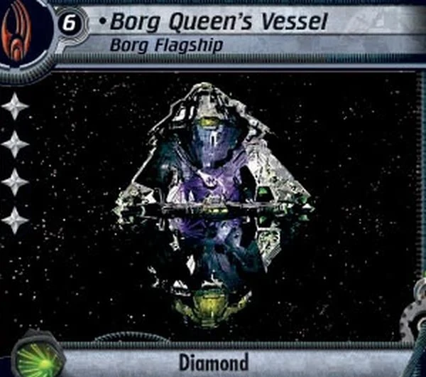 - ↑ CCG set: Decipher CCG, card: "Borg Queen's Vessel".