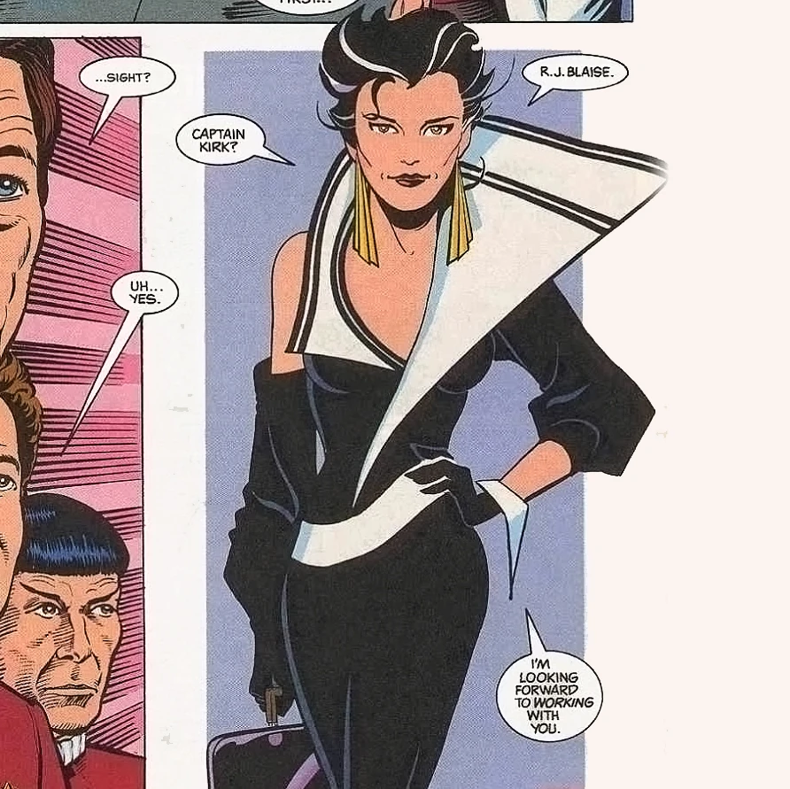 In 2287, after Captain James T. Kirk used extremely unorthodox measures to resolve a diplomatic situation on Chronian III, Starfleet decided Kirk needed to be reigned in a bit, and assigned Blaise to the Enterprise-A as ship's protocol officer (and, unofficially, Kirk's "watchdog").