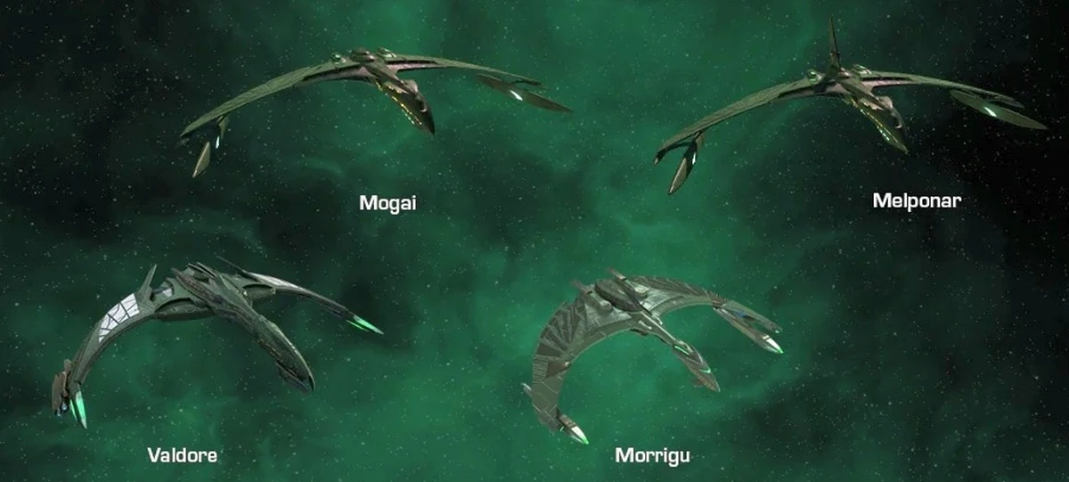 The RRW Morrigu and its class were an evolution of the 24th century Mogai and 2400s-era Valdore-class heavy warbirds. The similarity enabled RRN personnel to exchange hull components between ships of the three classes. (STO - From the Ashes mission: "Explore the Flotilla")