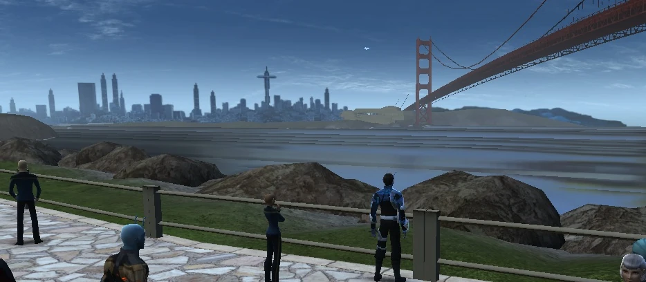 It received more shuttle traffic than any other city in the Sol system. The city's most notable landmark was the Golden Gate Bridge. (ST novel: Articles of the Federation)