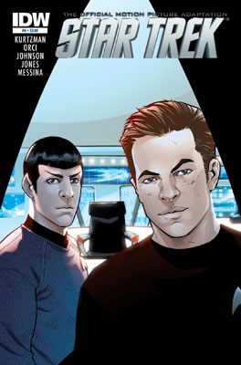 - IDW Publishing's comic book adaptation of the movie did not begin until ten months after the film's release. The six part series included a similar selection of deleted scenes to the novelisation, and like the earlier publication also elected not to use other deleted scenes. The comic was written by Tim Jones and Mike Johnson, with art by David Messina; the same creative team that had created the prequel to the movie, Star Trek: Countdown, and expanded upon Nero's activities in his missing twenty-five years in Star Trek: Nero.