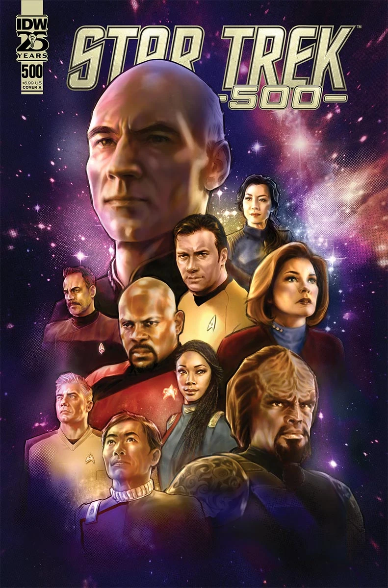 - Celebrate IDW's 500th issue of Star Trek comics (and an early Star Trek Day!) with this landmark oversized anthology issue! This collection of five short stories spans through fan-favorite eras of the beloved franchise from Lower Decks to Strange New Worlds, legacy characters from The Next Generation and The Original Series, written and illustrated by Star Trek comics veterans and new voices alike. Plus, don't miss out on the prelude to 2025's big Star Trek and Defiant comic crossover event written by Jackson Lanzing, Collin Kelly, and Christopher Cantwell!