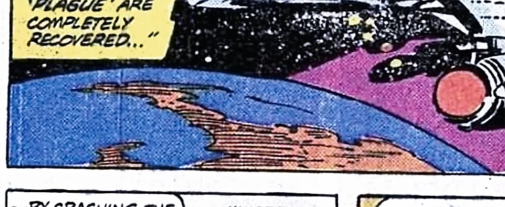 - The TOS comic: "Experiment in Vengeance!" planet was illustrated with a blue ocean and rocky brown continents, possibly indicating Earth-like habitability. There was no mention or illustration of the asteroid or space station facility.