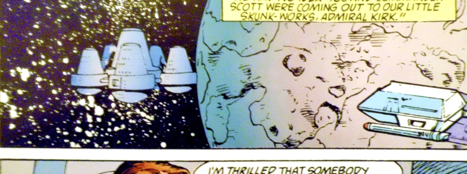- TOS - Star-Crossed comic: "A Bright Particular Star" (shown as space station orbiting a cratered planetoid/asteroid)