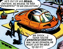 In the 2260s, Admiral Voysey cited the missing hovercraft as an example of many such vehicle disappearances over the centuries. He also cited a missing B-36 Peacemaker bomber which vanished in September 1972 as well as a G-50X rocket plane which was recovered by the USS Enterprise.
