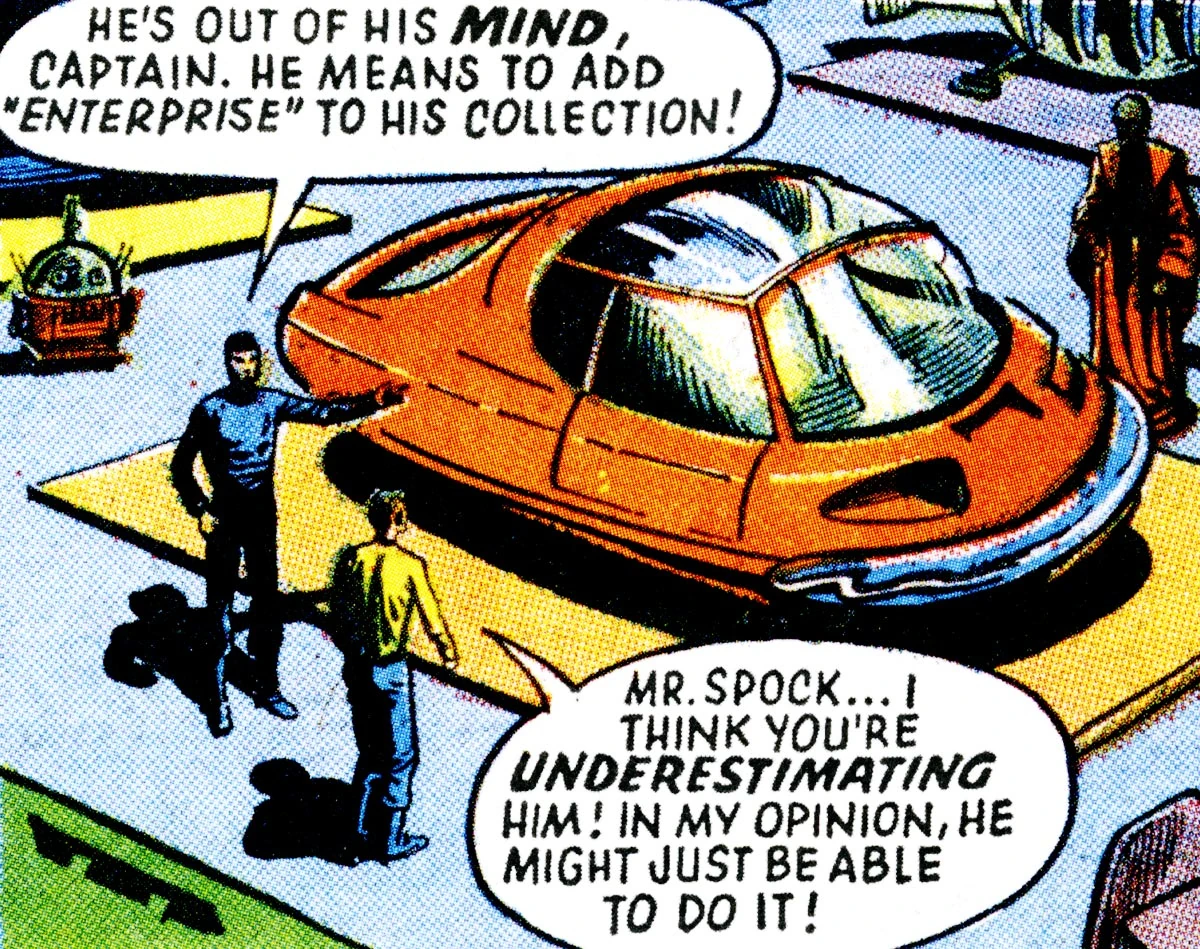 This hovercraft remained on exhibit in the Collector's museum, featured along with many other 20th century Earth vehicles in one of the main halls. It was seen by James T. Kirk and Spock. The hovercraft was likely destroyed when that wing of the museum was hit by an errant rocket blast. (TOS comic: "The Collector")