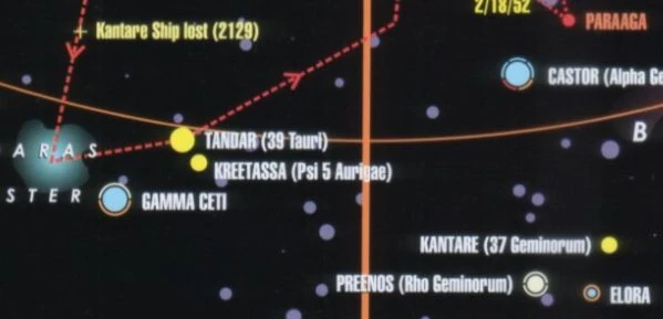 In 2151, the Enterprise (NX-01) was sent to Tandar to negotiate the release of Captain Jonathan Archer and Ensign Travis Mayweather from a prison camp. However, the ship diverted from its course to investigate the status of the prisoners. (ENT episode: "Detained")