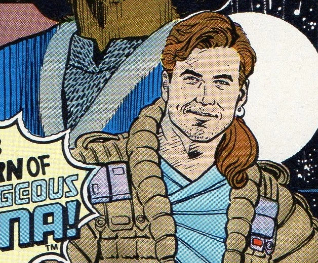 He later encountered the crew of the Enterprise again in 2367. After discovering the Erstwhile unmanned but full of precious cargo, the Enterprise crew suspected foul play, given Okona's character, and investigated. They learned that Okona was last registered aboard his ship in the vicinity of Alpha Pintara, uncharted territory light-years away. They followed Okona's trail back to the only habitable planet in the system, reading a single life form on the planet's surface. Receiving a transmission from the surface that needed to be decoded, and unable to reach Okona through shipboard communication systems, Captain Jean-Luc Picard commanded an away team led by Counselor Deanna Troi, comprised of Lieutenant Commander Data, Lieutenant Worf and Doctor Beverly Crusher, in the event that Okona was injured. Transported to the surface, the away team found themselves without their tricorders or phasers, dressed in exotic garb. Okona greeted them, dressed similarly, immediately making a pass at Crusher, although the away team demanded answers of how the freighter captain had ended up in such a strange situation. (TNG comic: "Wayward Son")