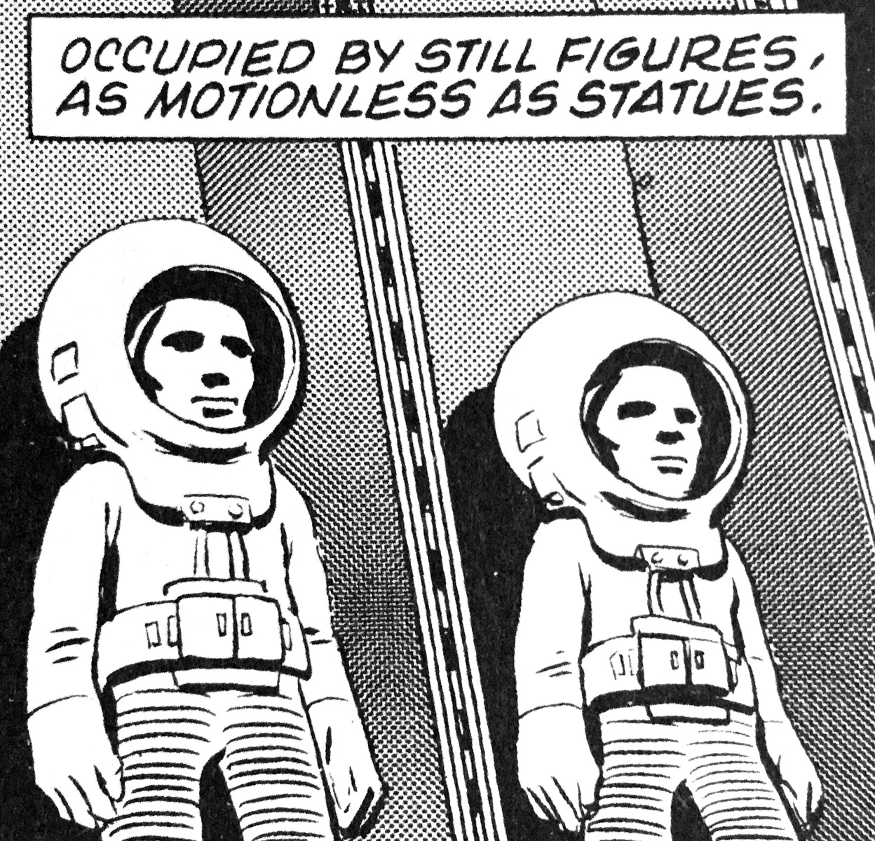 In the 14th century, in an attempt to enforce peace, a male and female astronaut flew a Toltan spacecraft to the moon together, to leverage it as an orbital weapon platform. Shortly after they landed and disembarked, they were grabbed by a robot crawler, brought within the moon's subterranean complex and put into suspended animation. They became the colony's lone survivors, however, as a global nuclear holocaust soon destroyed all life on their planet.