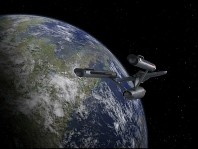 The Asimov surveys a class M world.