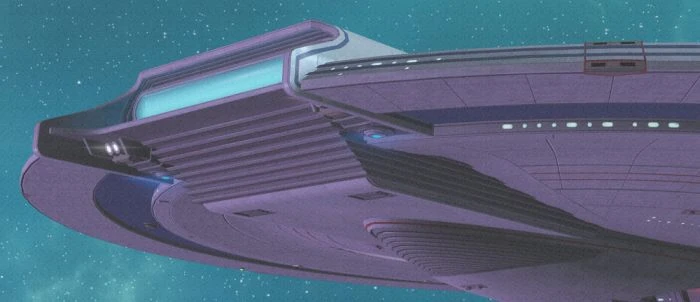 Conceived as the lead ship of a class of experimental battlecruisers, the Georgiou was developed during a time of escalating tensions with the Klingon Empire during the pre-Khitomer I era as an alternative to the Excelsior-class design proposal. Whereas the Excelsior was envisioned as a further evolution of the Constitution-class multi-mission explorer cruiser, the Georgiou was designed along much more narrow parameters. Intended primarily to match the Empire's K'tinga-class one on one. the Georgiou class packed a considerable amount of firepower into a design roughly three-quarters of the Excelsior's size, and a small number of Georgiou-class ships were built prior to the signing of the Khitomer Accords of 2293.
