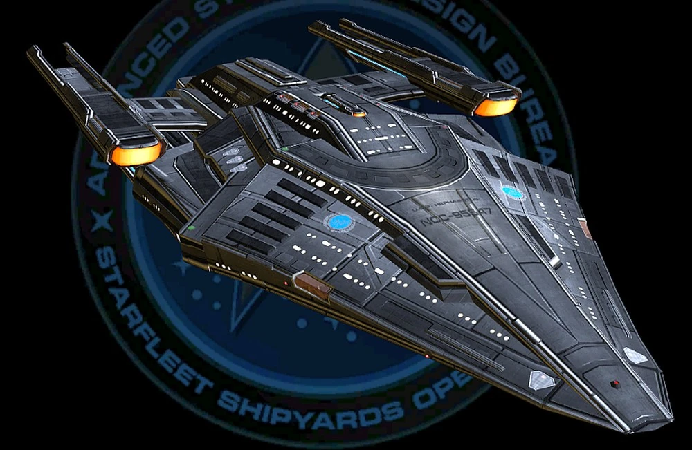 In the 2390s, Starfleet commissioned two starship classes as new iterations of the 2370s-era Prometheus-class. Initially, multi-vector assault mode was deemed too impractical to implement. The experimental registry number NX-95560 was shared by both the USS Phoenix and the USS Cerberus, lead ships of the Phoenix- and Cerberus-class advanced escorts, respectively. Ships of these classes saw action in the Federation-Klingon War of 2405-2410. (STO website: Ships of the Line)
