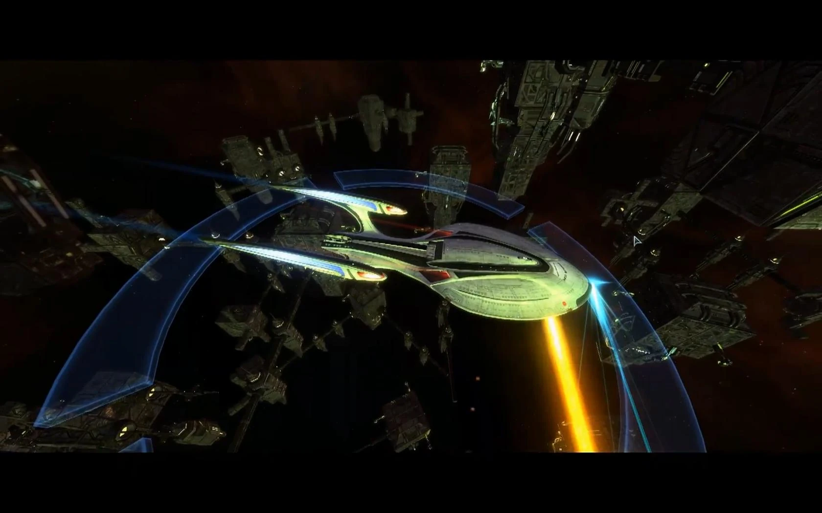 In 2409 she led a task force containing five other ships against a large Borg fleet protecting a Borg Queen. Midway through the battle the Houston attacked a pair of Unimatrix 0047 command ships protecting the Queen's Borg diamond. One command ship struck her amidships with a plasma lance, and the Houston exploded seconds later. However, most of the crew made it to the escape pods. (STO mission: "Hive Onslaught")