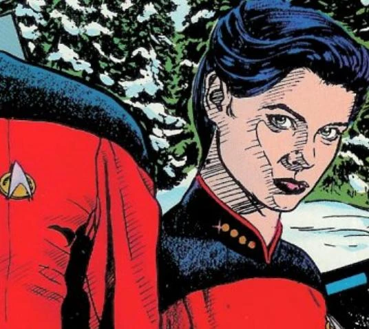 The surviving Marco Polo crew received medical treatment aboard the Enterprise-D. After Doctor Beverly Crusher patched her up, Halk met with Riker to reminisce about shared experiences. (TNG comic: "Thin Ice")