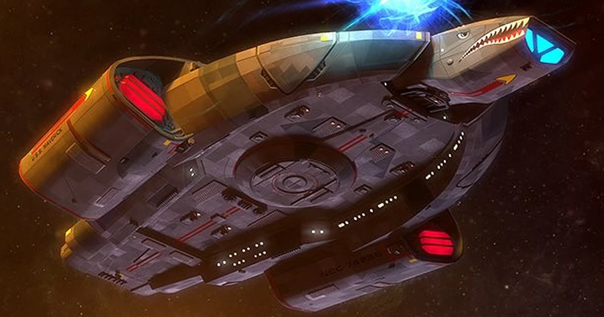 This ship was in active service during the war between the Dominion and the Federation Alliance. Starfleet decorated the Maverick with nose art of shark's teeth.