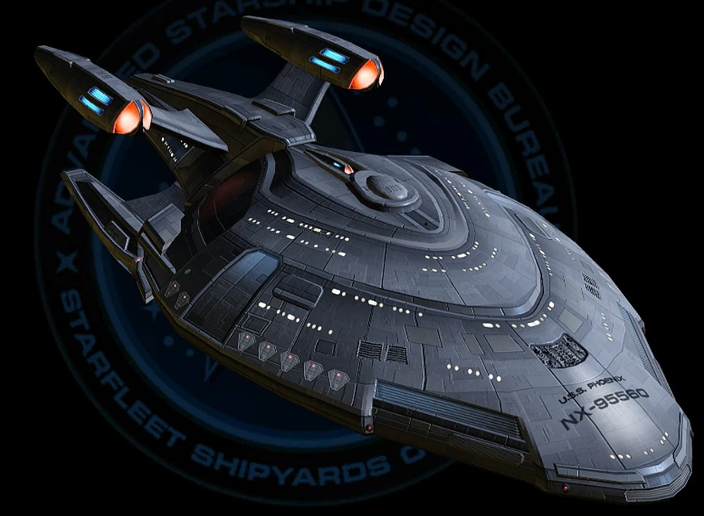 The USS Phoenix (NX-95560) was a 24th[2] and 25th century Federation starship, a tier 5-rated Phoenix-class advanced escort in Starfleet service from the 2390s[2] to the 2410s[3] decades. (STO - Klingon War mission: "Welcome to Earth Spacedock")