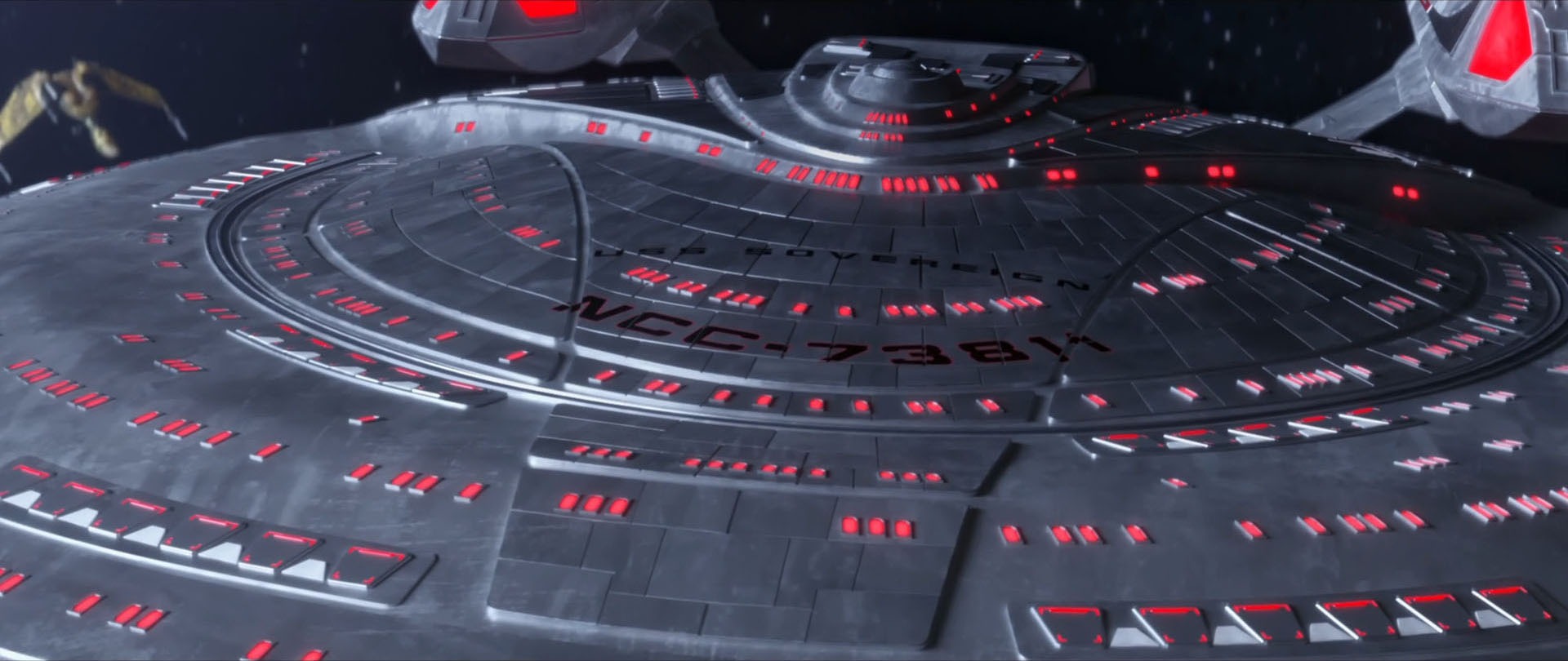 The USS Sovereign's registry was first given as NCC-73811 in the 2002 PC game Star Trek: Bridge Commander, which was canonically affirmed in the 2022 Star Trek: Prodigy episode "Supernova, Part 1". Differently, the 1999 Star Trek Role Playing Game sourcebook The Price of Freedom from Last Unicorn Games gave the registry as NCC-17454. Meanwhile, the 2003 Star Trek Roleplaying Game supplementary book Starships from Decipher gave the registry as NX-90201. Finally, the launch of Star Trek Online in 2010 implied it to be NCC-74977.