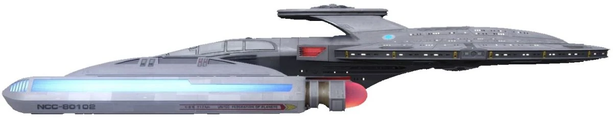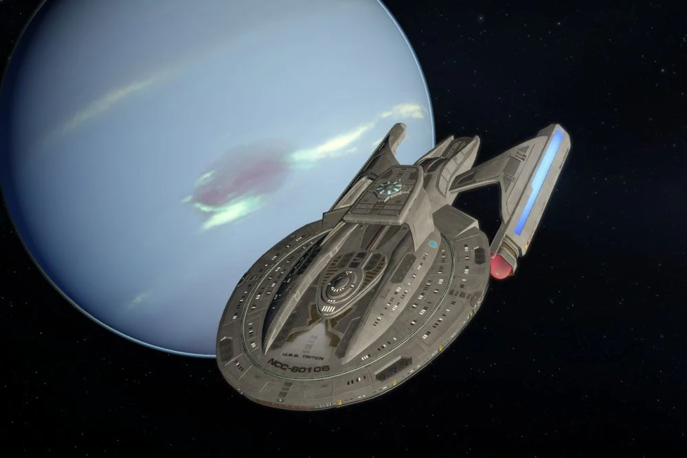 The USS Triton[4] (NCC-80106) was a 24th century Federation starship, a Luna-class science vessel in Starfleet service from the 2370s decade. (TTN novel: Sword of Damocles, "Titan Fold-out")