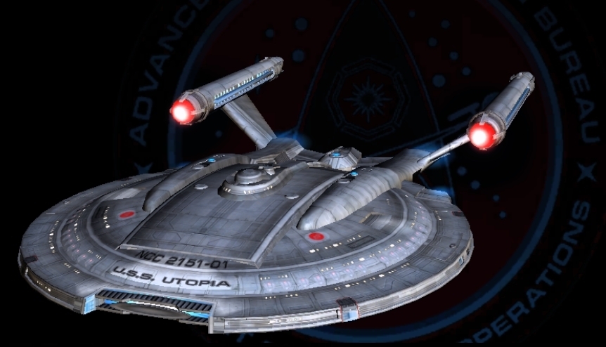 The USS Utopia (NCC-2151-01) was a 25th century Federation starship, a tier 1-rated NX-class light escort and modern prototype of its class, in Starfleet service in the 2400s and 2410s[2] decades. (STO - Klingon War mission: "Welcome to Earth Spacedock")