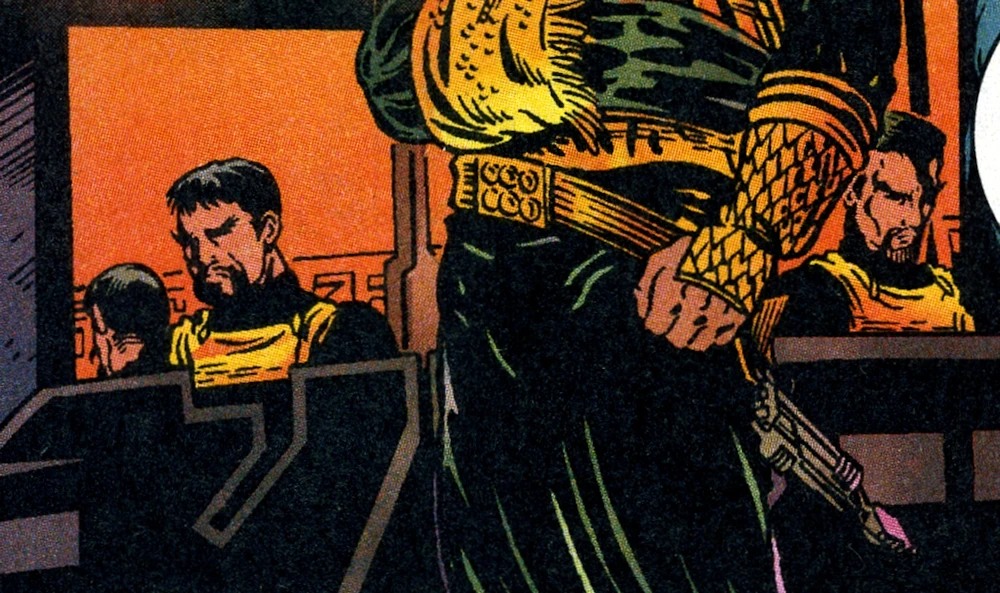 When Kaaj attempted to secure the Thanatos weapon from the planet Temazi his team consisted of himself, Virka, and at least three other men. At least two of these men disguised themselves as Temazi and went with Kaaj and Virka to the temple where they encountered Pike, also in disguise. After Kaaj attacked Pike their alien origins were identified by the Temazi, who launched the Thanatos weapon to destroy them. The Starfleet and Klingon teams made their escape together aboard a Klingon shuttlecraft, but were followed into space by the weapon. Above the planet D7-class vessels of Kaaj's enemies led by Kharg waited, and fired on shuttle, which only narrowly escaped. (EV comics: "Thanatos", "Nemesis")