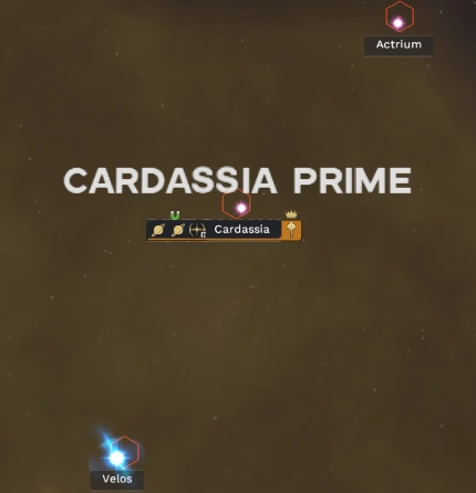 Velos was a trinary star system, located in Cardassian Union space in the galaxy's Alpha Quadrant. (ST video game: Infinite)